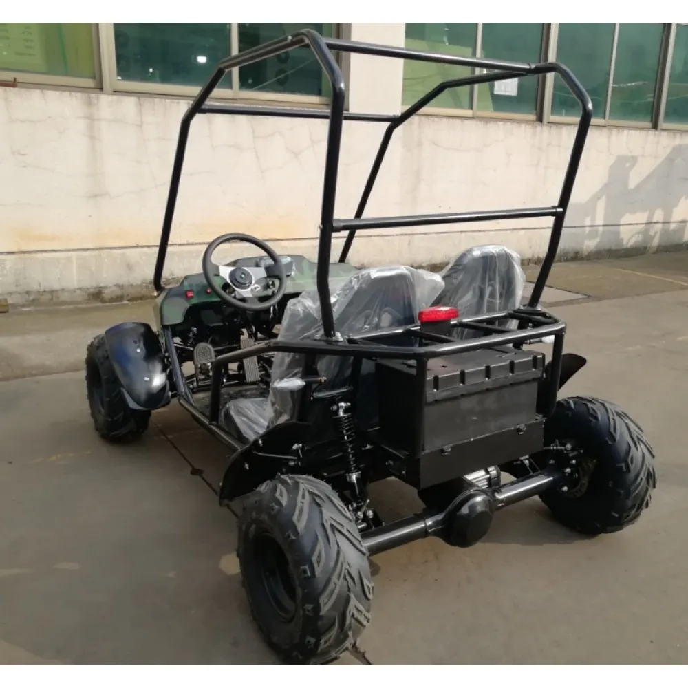 Техника представлена прочной и надежной конструкцией. Производитель акцентирует внимание на двигателе мощностью 1500 Вт. Улучшенные показатели мотора позволяют с легкостью набирать скорость 45 км/час. Для большей маневренности модель оснащена 3-х скоростным переключателем. Повышенная проходимость техники на дороге любого типа и покрытия обеспечивается высоким дорожным просветом. Багги имеет удобные сидения с функцией регулировки для длительных поездок без дискомфорта. Прочные ремни безопасности надежно фиксируют пассажира при езде. Измерение скоростных показателей обеспечивается современным LED спидометром.