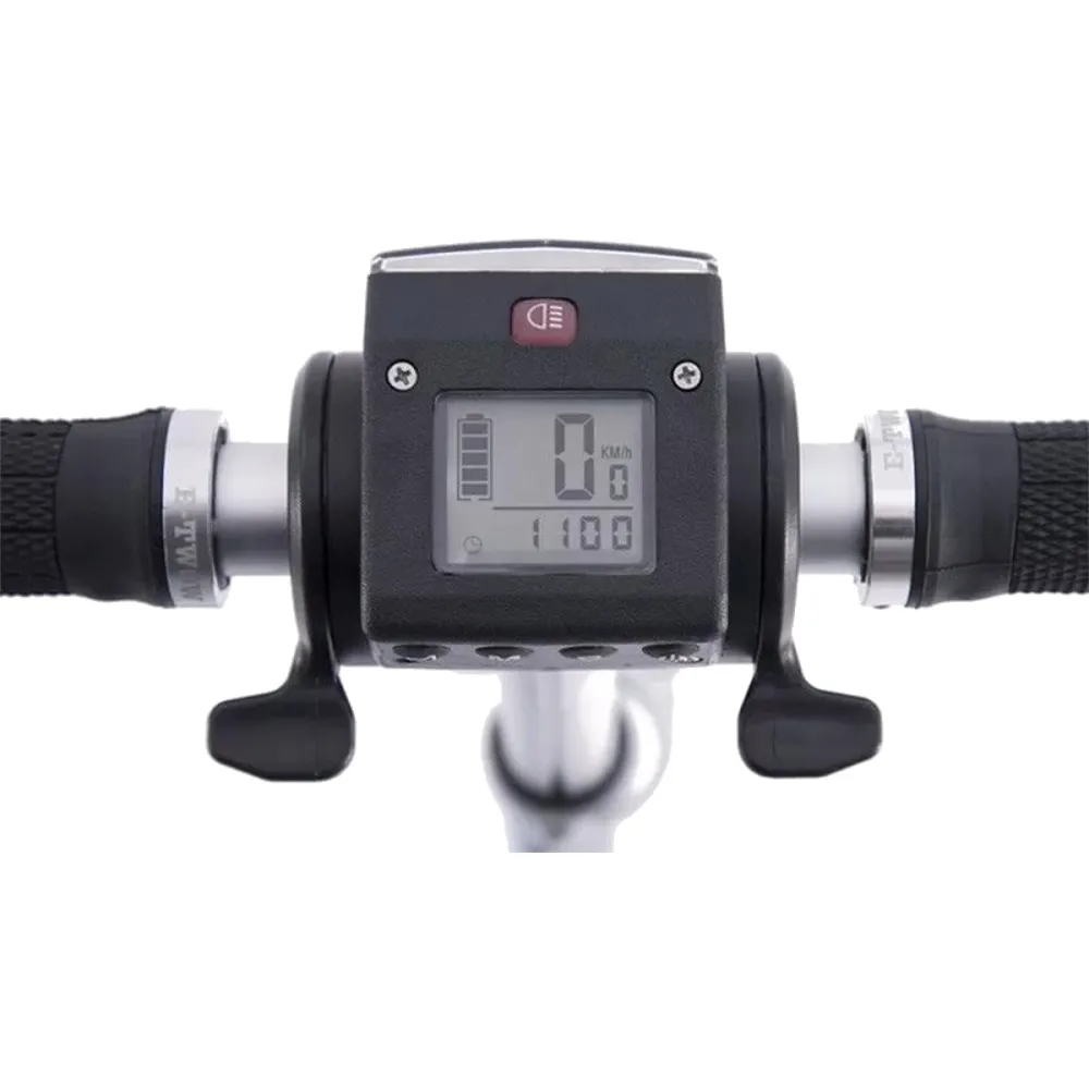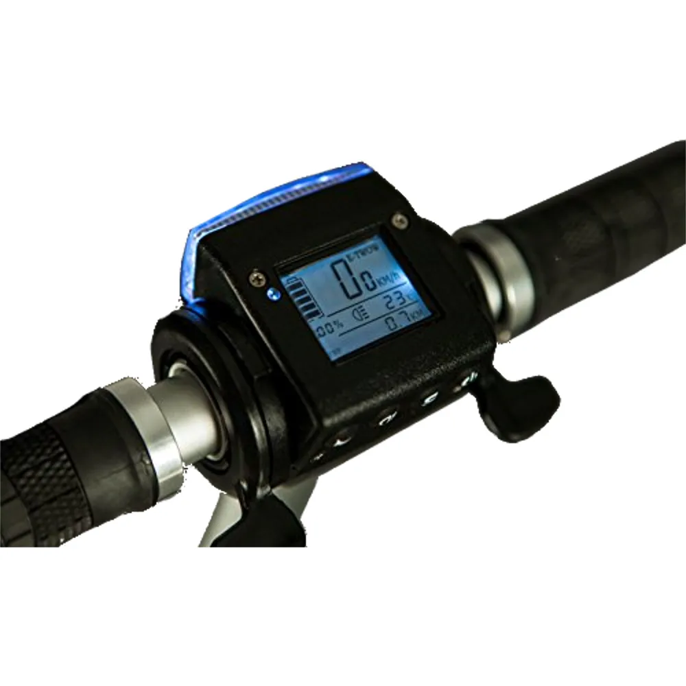 Аккумулятор 6.5 А/ч до полной зарядки необходимо 2 часа, надо просто включить в сеть. Этой емкости хватит на 30 км. На рулевой стойке установлена фара, что сделает вас заметным в темное время. Информационный дисплей позволит легко держать под контролем основные показатели.
