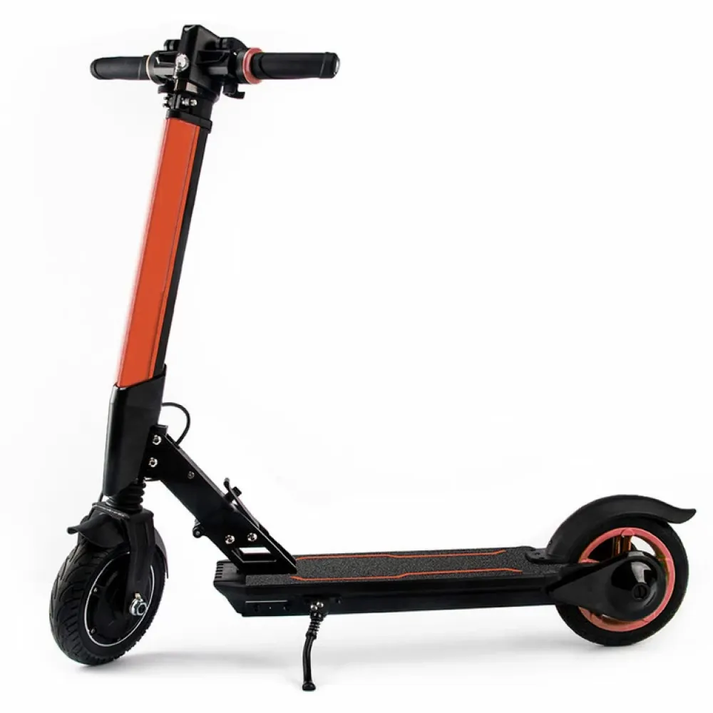 Электросамокат разработан по инновационным технологиям. Материал изготовления – облегченный алюминий сделал модель легкой и прочной одновременно (масса составляет 10,8 кг). Максимально допустимая грузоподъемность -  до 100 кг допускает пользование тс подростками и взрослыми ездоками. При максимальной мощности электродвижка 250 Вт райдер может разогнаться до 25 км/час и на средних скоростях на одном пробеге преодолеть 20 км. 8-дюймовая колесная часть накатистая, благодаря передним амортизаторам способна преодолевать небольшие неровности и исключать возникающие в дороге вибрации. Широкая дека покрыта нескользящей брендовой шкуркой. Рулевая часть оснащена прорезиненными удлиненными грипсами. В видимой зоне расположен информационный жк-дисплей, предоставляющий полную информацию о скорости в настоящие момент, пробеге и степени заряда АКБ. Техника востребована современными райдерами, считается лучшей в сегменте. Для заказа и покупки самоката предлагаем связаться с нами прямо сейчас.