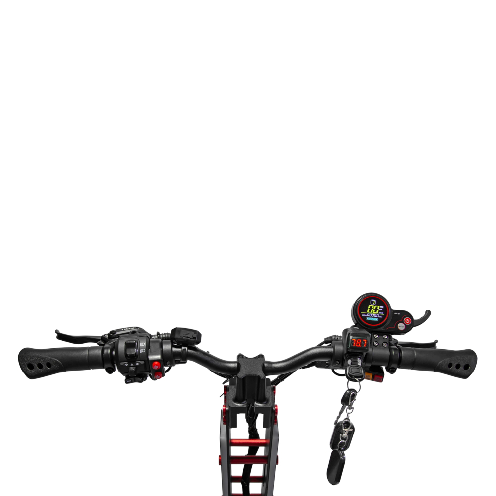 Электросамокат Syccyba Goliaf — полноприводный внедорожник премиум-класса с пиковой мощностью 11000 Вт, максимальной скоростью 110 км/ч, пробегом до 100 км и грузоподъемностью до 150 кг, предназначенный для экстремальной езды по бездорожью.