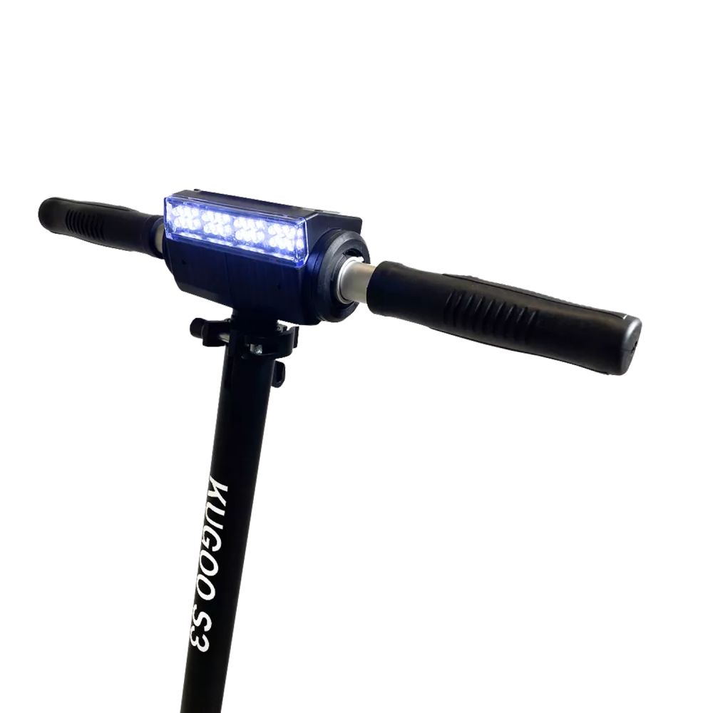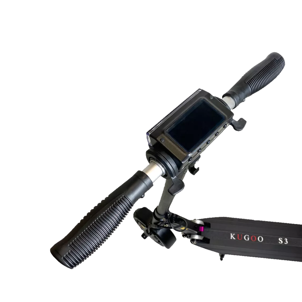 Самокат Kugoo S3 имеет запатентованную складную конструкцию, в сложенном состоянии его легко транспортировать. Его вес 11 кг позволяет переносить агрегат в руках и брать в общественный транспорт. Есть бортовой компьютер, светодиодная фара.