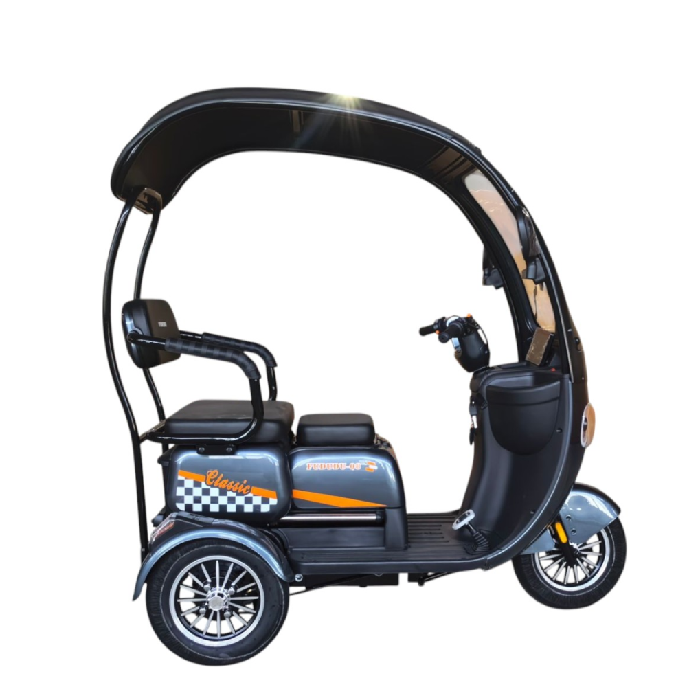 Fududu Q8 — трёхколёсный электротрицикл с задним приводом и мощным мотором 1000 Вт. Занимает уверенное место в сегменте городских трехколесных электросредств благодаря сочетанию практичности, мощности и безопасности.