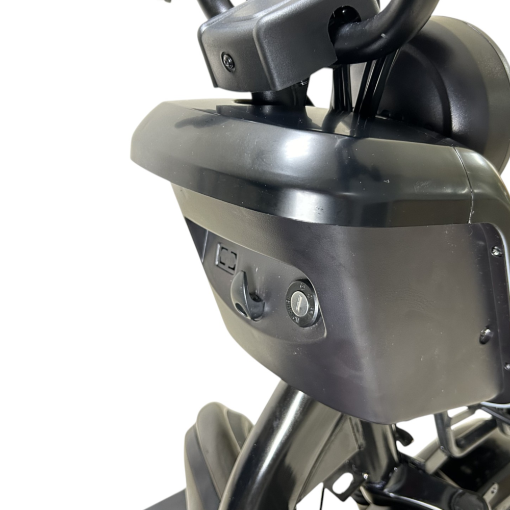 В стандартной комплектации есть зеркала, корзина, фара, стоп-сигналы и поворотники. LCD-дисплей показывает заряд, пробег и скорость, что делает поездки удобнее.