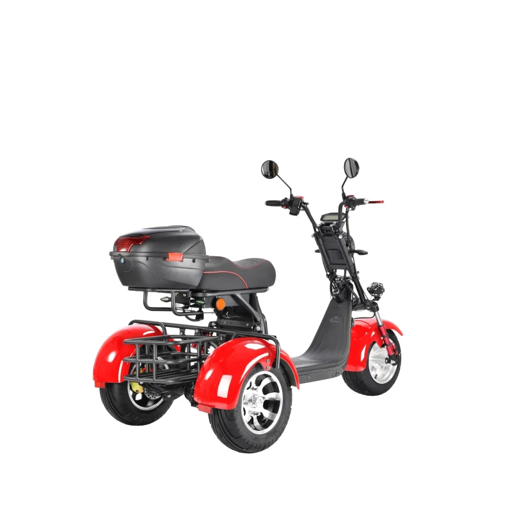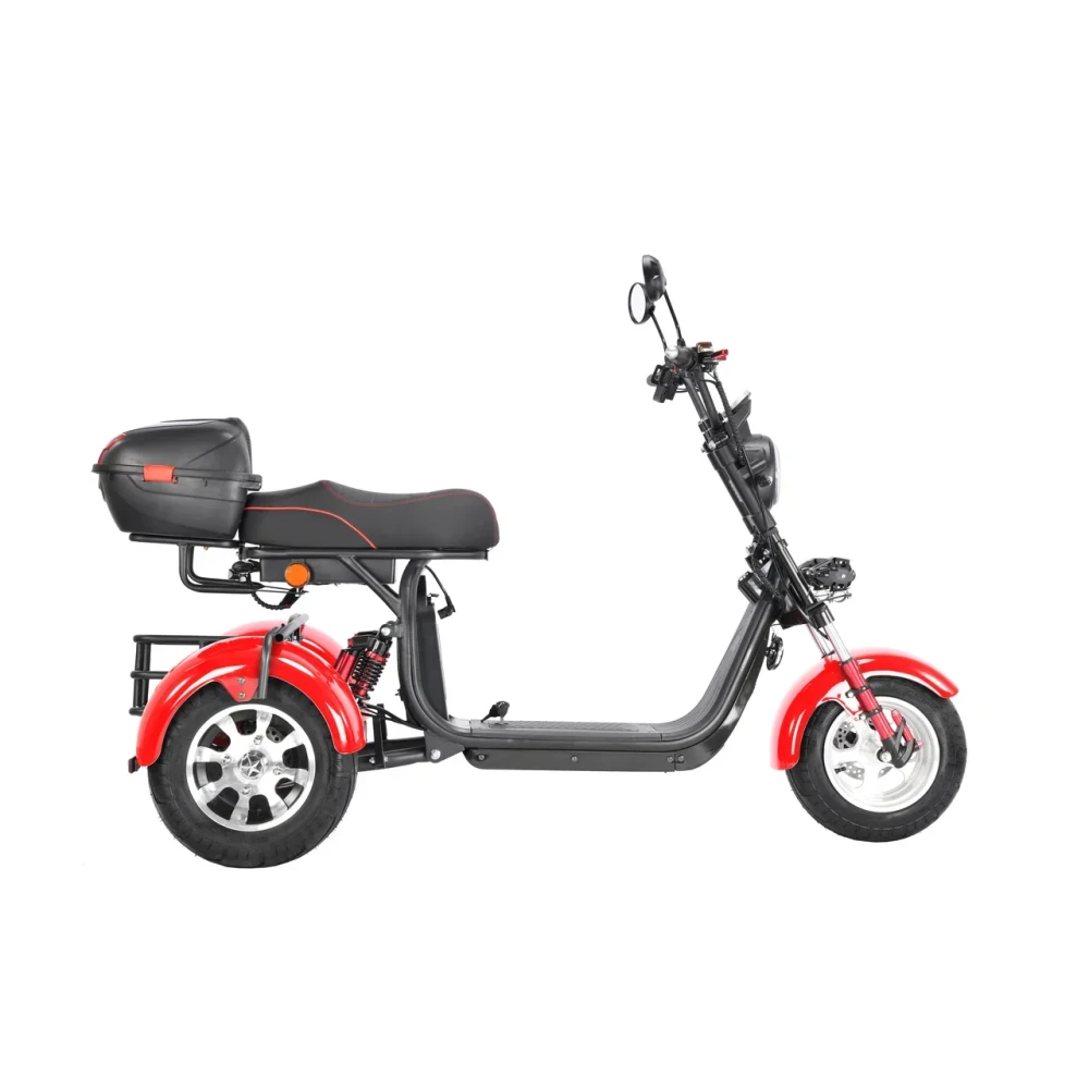 Трехколесный скутер CityCoco WS-Pro 3000W Trike+ красный - быстрый городской транспорт с литыми дисками и широкими колесами.