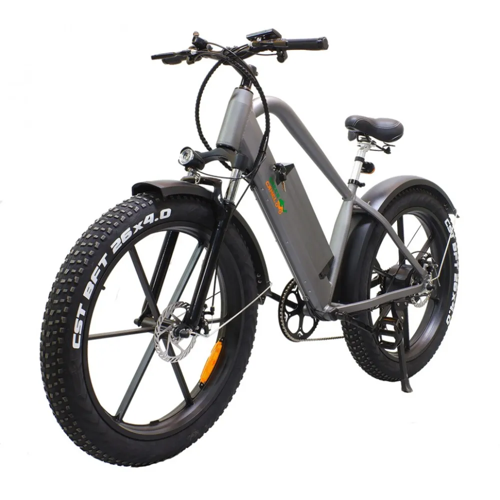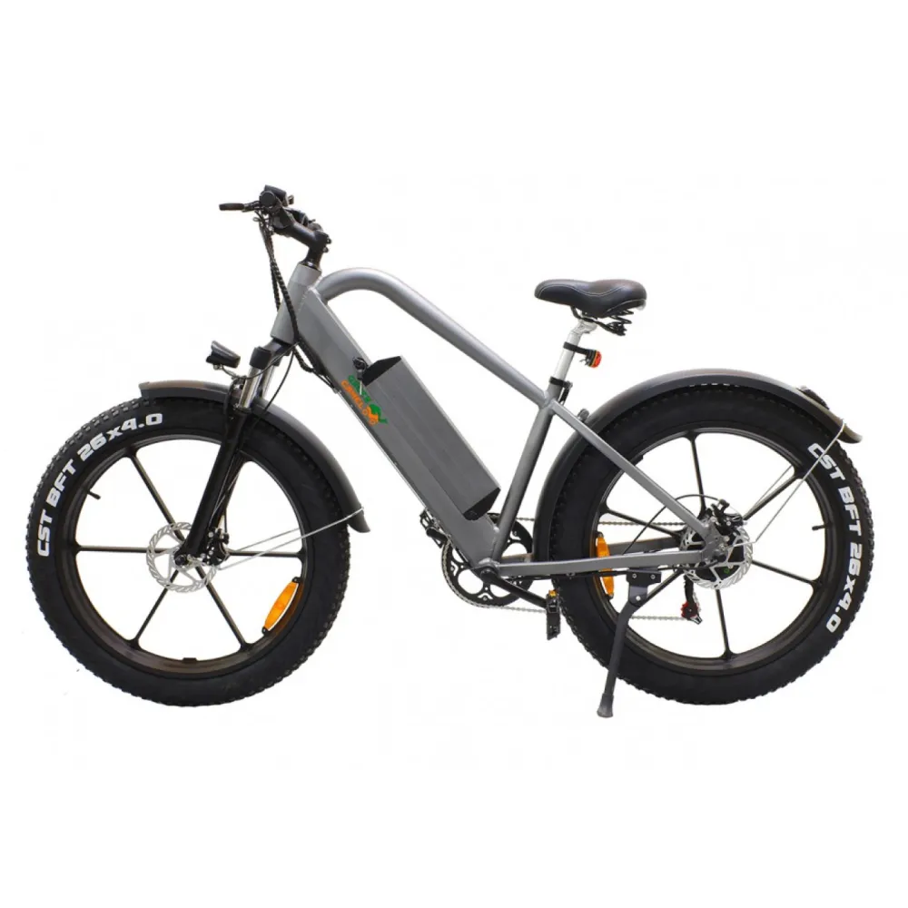 Купить Электровелосипед Грин Кэмэл Хищник (R26FAT 500W 48V 10Ah) Алюм, 6скор в сером цвете стал несомненным лидером продаж. Модель выглядит строго и модно одновременно. От техники исходит сила и мощь. Велик создан для любителей высокой скорости и выброса адреналина. Покупка электровелосипеда сделает отдых разнообразным, поможет забыть о проблемах прошедшего дня и ощутить, что такое порыв свежего воздуха.