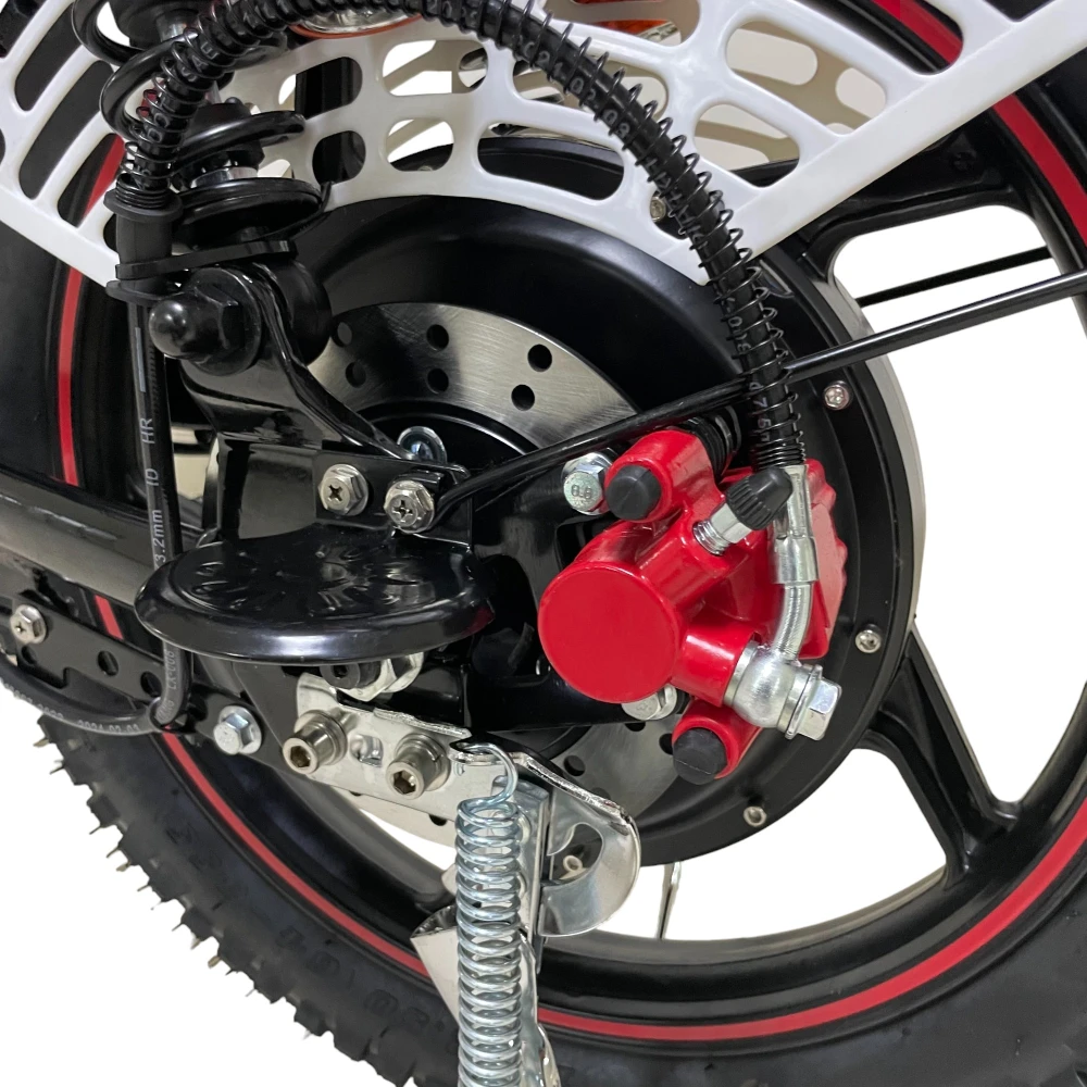 Передний барабанный + задний дисковый гидравлический тормоз — уверенное торможение даже на скорости.