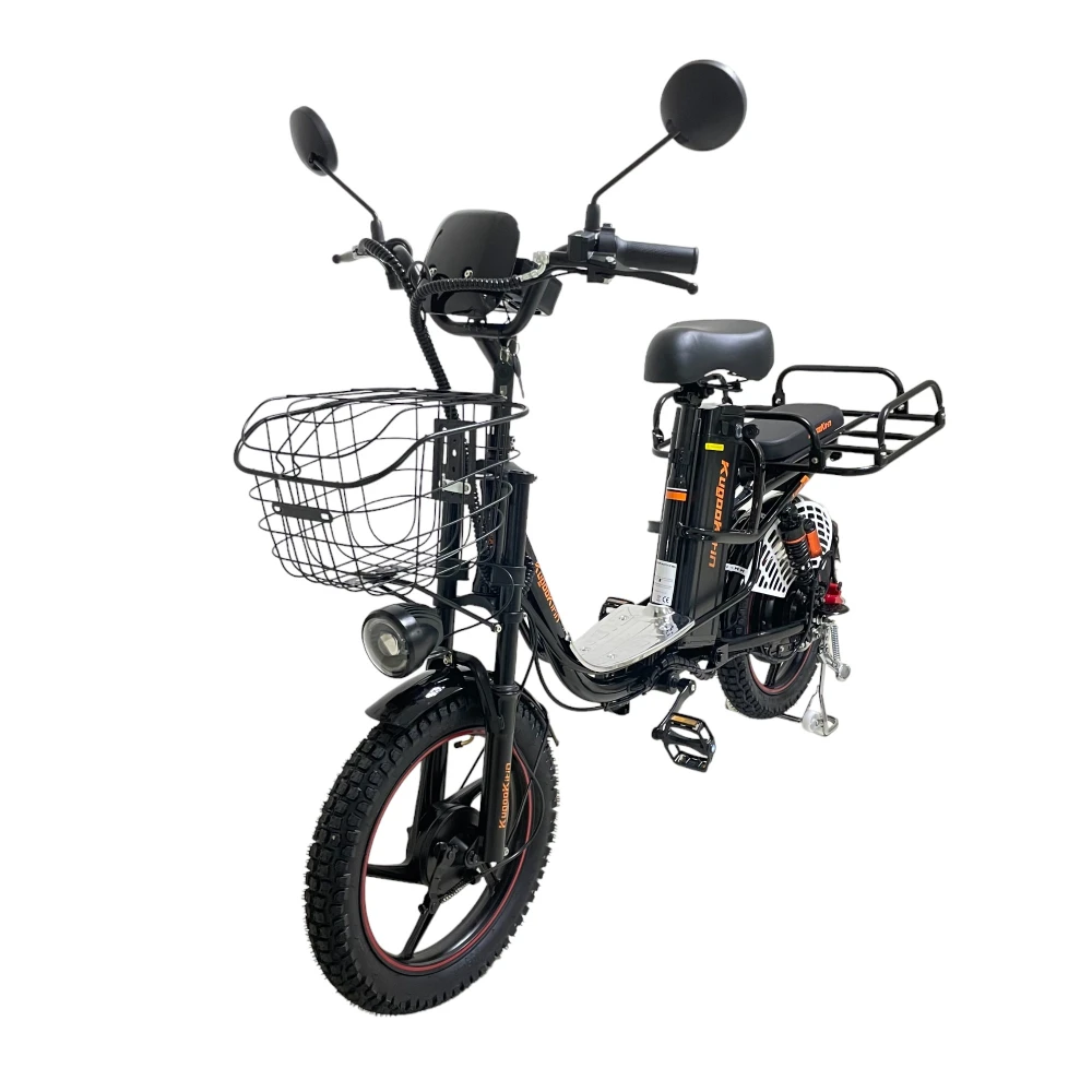 Съёмный аккумулятор 15.6 Ah обеспечивает до 60 км на одном заряде. Передняя амортизационная вилка и задний пружинный амортизатор сглаживают неровности, превращая дорогу в комфорт.
