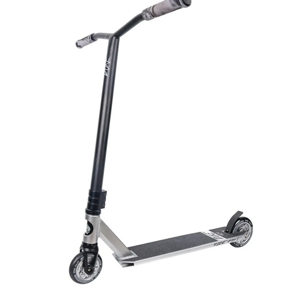 Он целиком изготовлен из высококачественного алюминиевого сплава – это очень легкий, но прочный материал, который на сегодняшний день применяется при производстве большинства моделей самокатов. Отличия трюкового самоката от обычного – повышенные нагрузки и лучшая маневренность. Поэтому в данной модели производитель использовал комплексное применение алюминия.