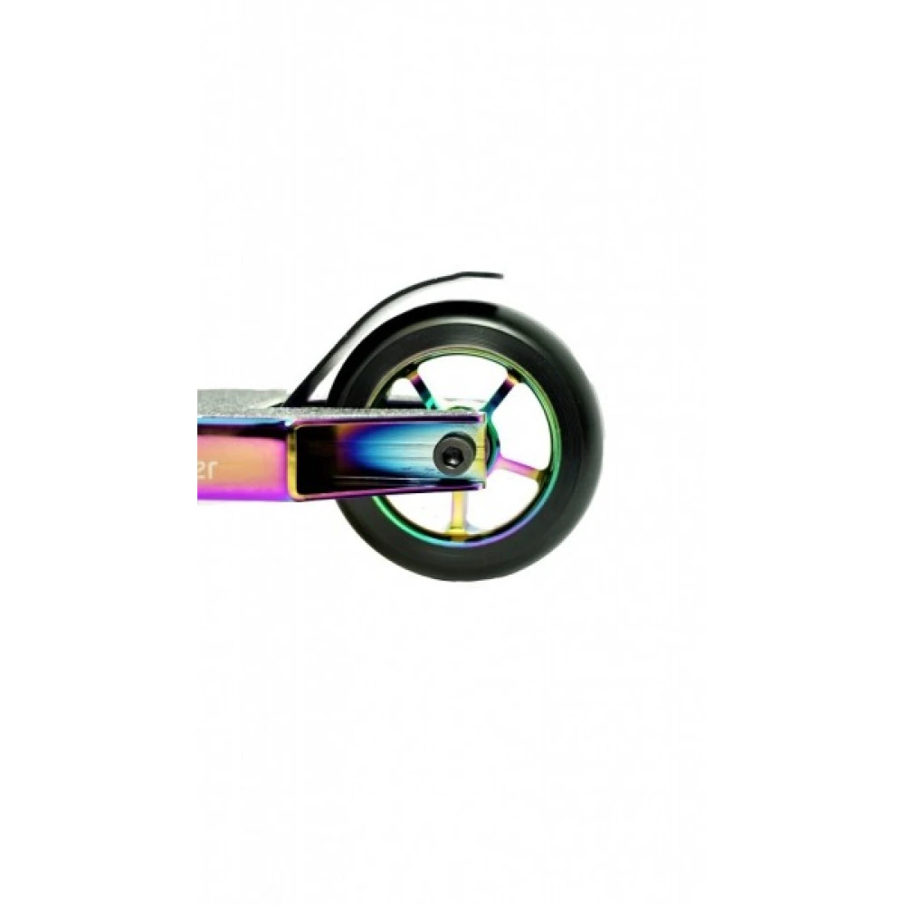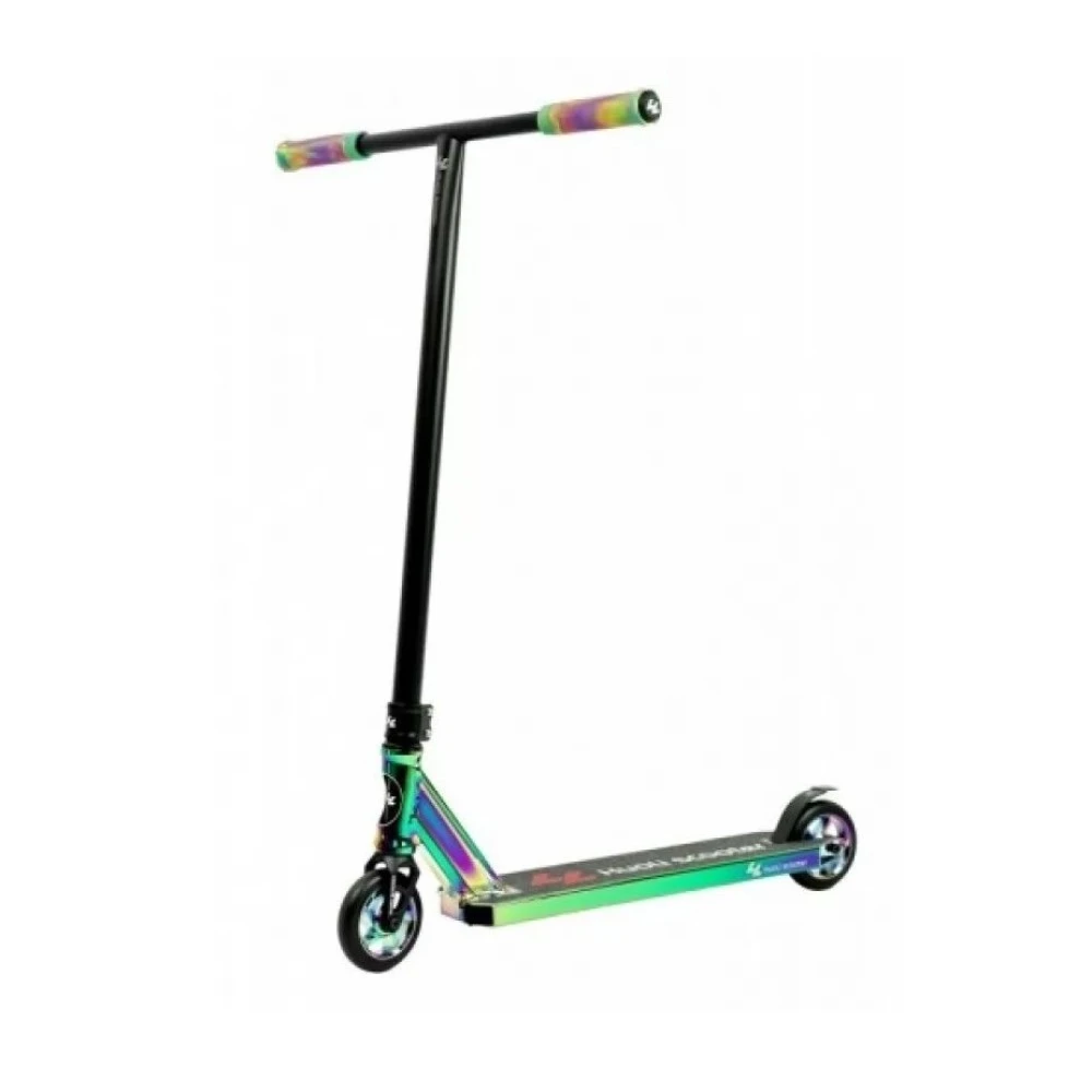 Трюковой cамокат Huoli Mole Neo Chrome/Black, цвета неохром – техника с прочным стальным рулем 580 мм и массой 3,862 кг управляется легко и без особых усилий.  Комплектация и технические параметры модели позволяют воплощать в жизнь смелые трюки и экстремальные съезды по дорожкам и рампам. Необычное цветовое сочетание привлекает внимание и моментально вызывает зависть окружающих.