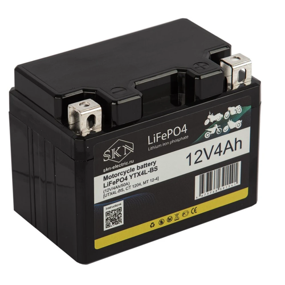 Аккумулятор для мототехники SKN LiFePO4 YTX4L-BS (12V/4Ah/50A) [UTX4L-BS, CT 1204, MT 12-4]